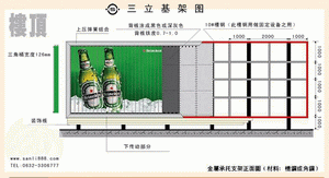 4、 如需要也可在广告牌正面搭建脚手架并顺序贴画面;或把广告牌平面停定在安装钢架背面,在钢架内部反顺序贴画面(限同步式翻转)。如要清除画面,一定要由上往下撕除画面,否则会将三角通拆离广告牌。