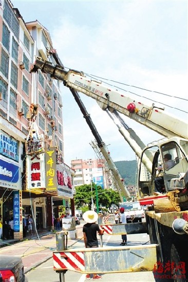 这是莆田市组织开展的户外广告专项整治中的一幕。从本周起,执法部门将以街道为单位,逐步清理全市的违法户外广告,对沿街店面的户外广告进行统一规划、设计。